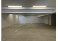 In the spacious underground garage, there are two parking spaces belonging to the apartment, and from the garage, there is an elevator that goes to the first floor to the apartment's entrance door.